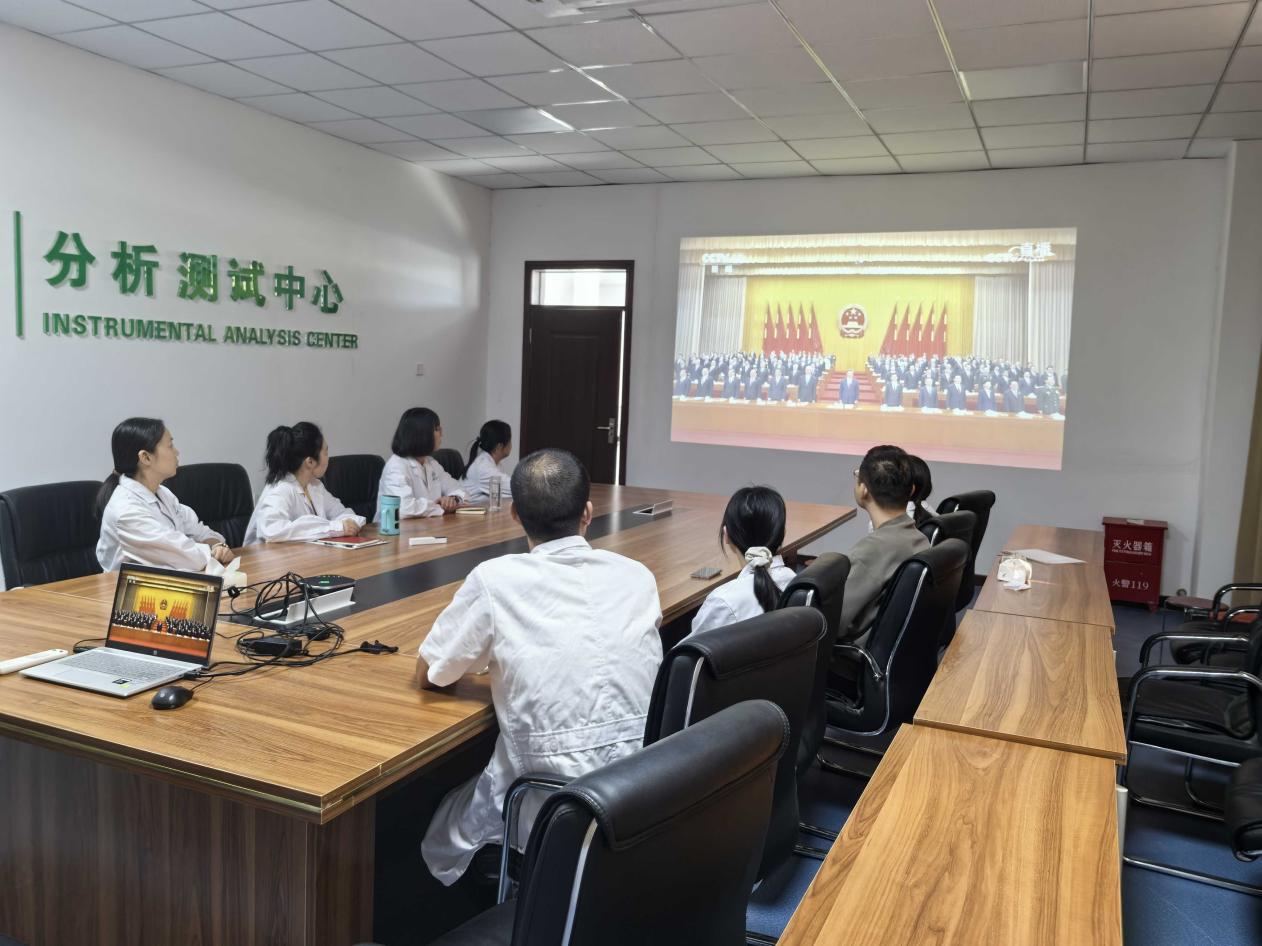 直播过程中,中心会议室里气氛庄重而热烈,大家全神贯注,认真聆听大会各项议程,一同感受新疆70年来在党的领导下取得的辉煌成就,深刻领会习近平总书记对新疆发展的重要指示以及新时代党的治疆方略。